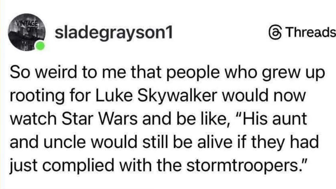 Indeed. These people think respect comes with the job because they’re authoritarians trained to think authority is always legitimate so you should always respect the people above you. Just like they think being a white man automatically makes you the most qualified for every good job, so DEI hiring means you can’t be getting the best people. Because that’s actually the big joke of this: If they don’t like someone above them, they not only don’t get respect but are considered to have the job illegitimately.
