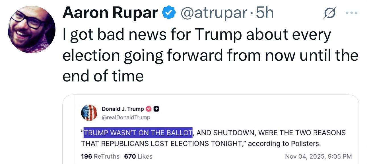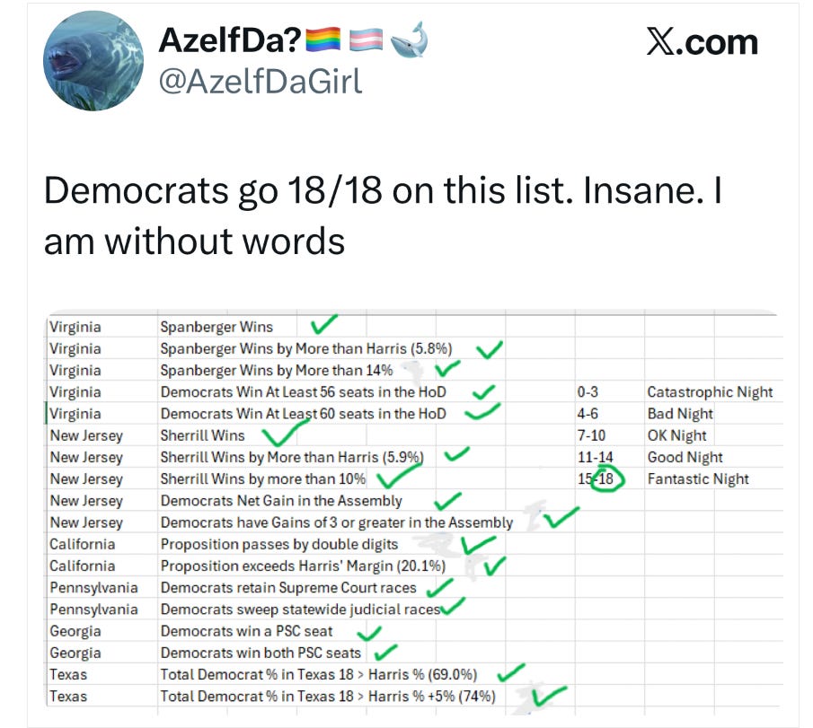 It was wonderful to “hope scroll” instead of “doom scroll” for a change. So let’s take this win, cherish this feeling, fill ourselves with that hope and determination, and take back our country in 2026.