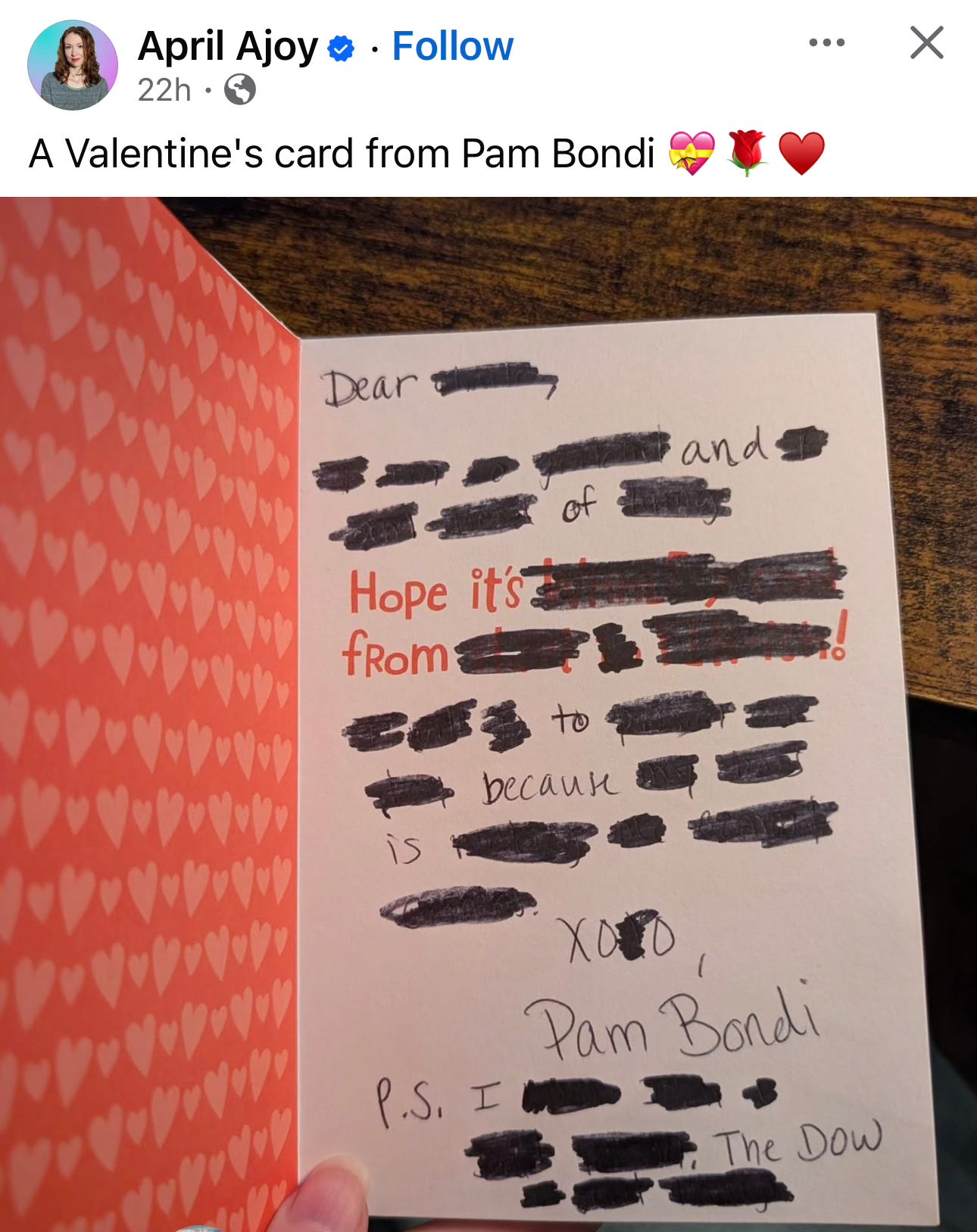 With all the Pam Bondi testimony takes out there, this one rose to the top of my list.
