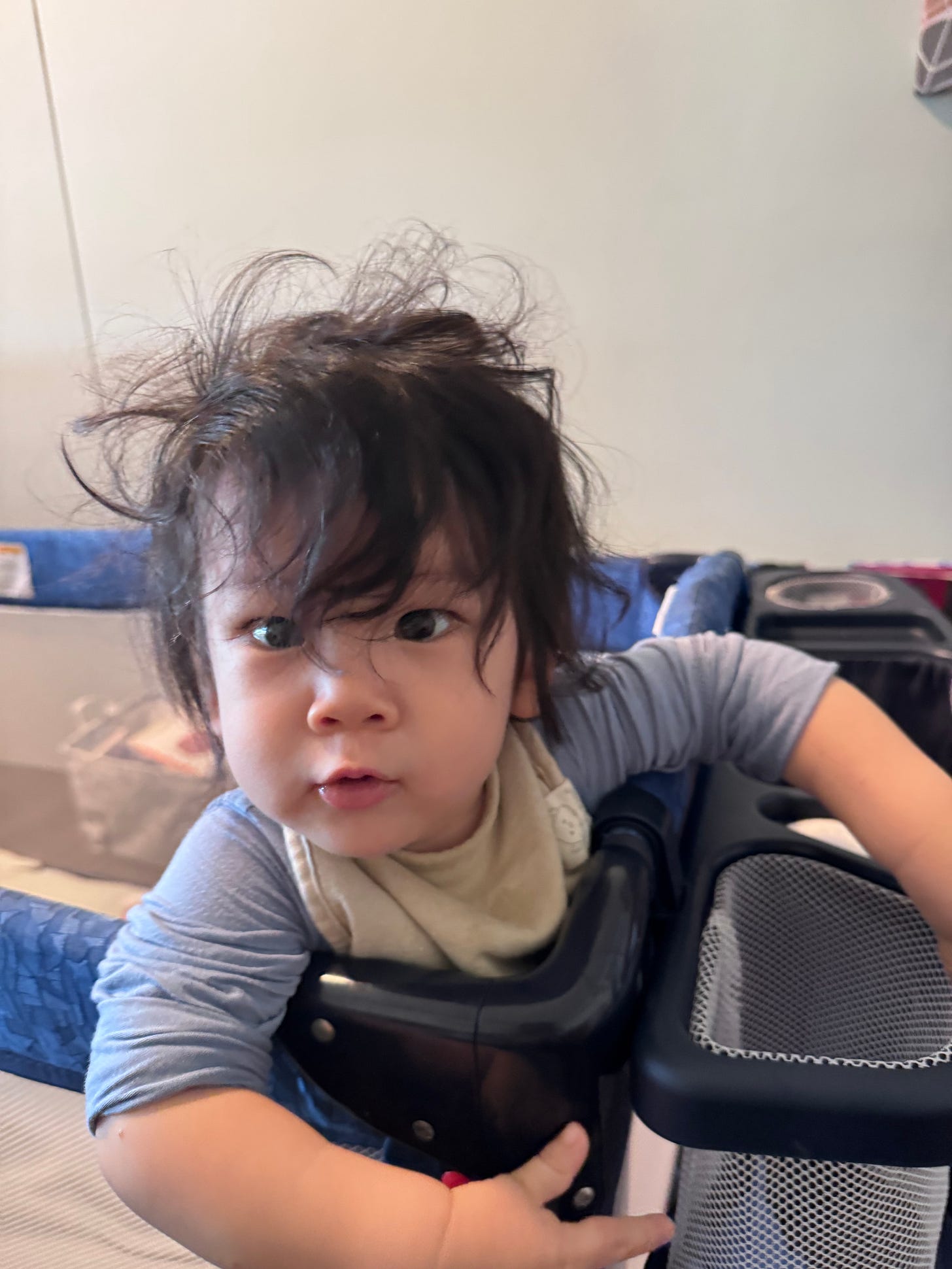 For my baby boy, it’s pressing my face against the playpen mesh. For this little guy…