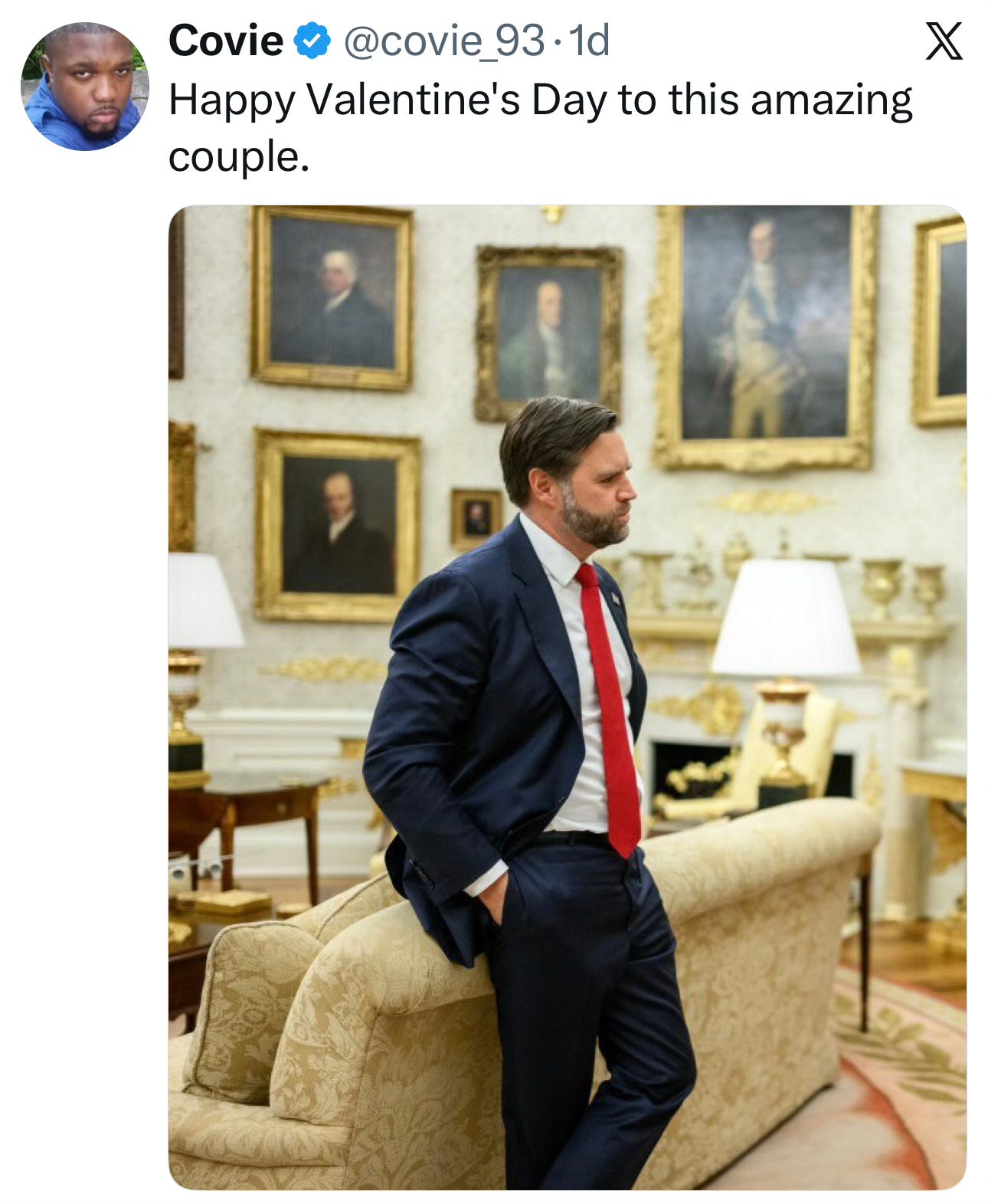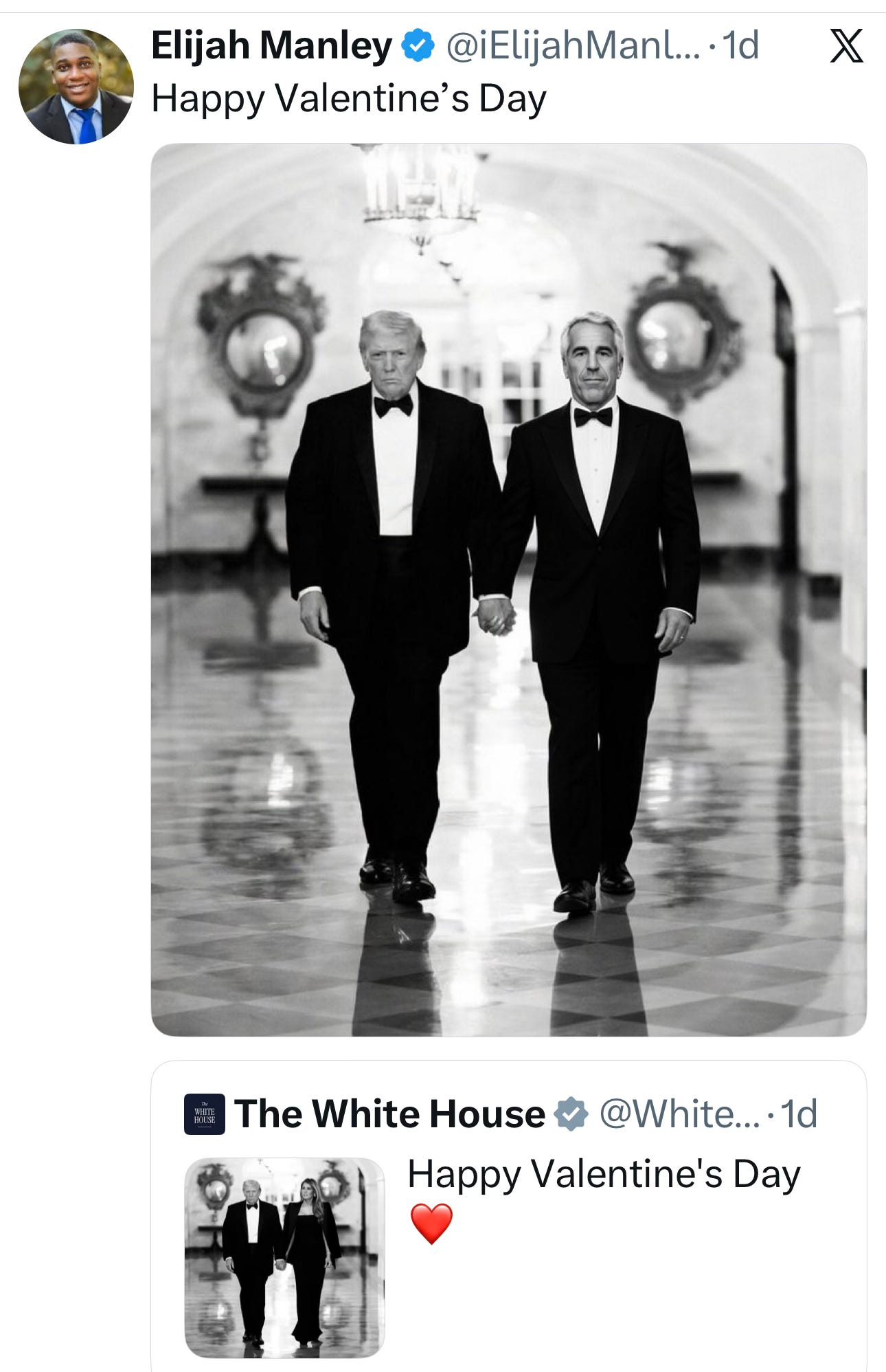 Last weekend, the White House put out a Valentine’s message featuring Donald and Melania, and it just didn’t seem right. Ah, fixed it!
