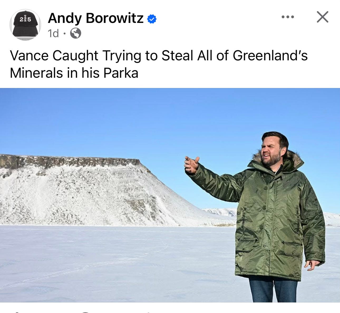 The regime has its many monsters with many scare pronouncements. Such men hate being mocked. So here’s JD Vance being mocked. No notes, 10/10.