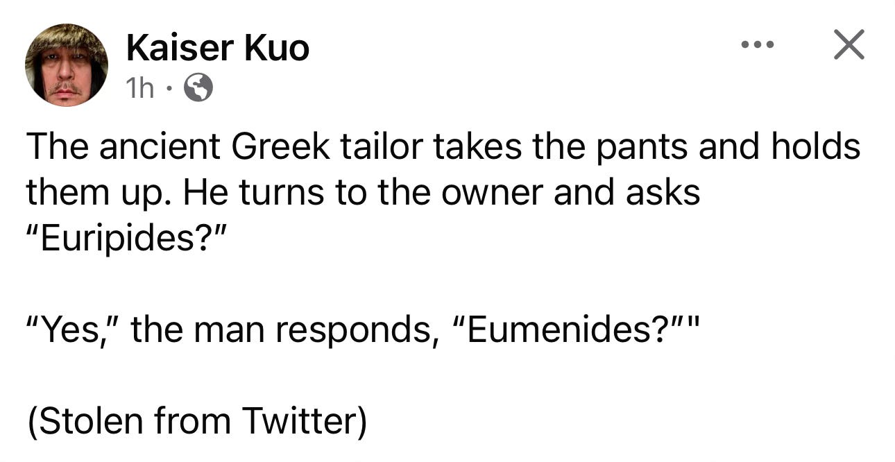 Today’s Dad Joke comes to you from none other than my brother Kaiser. So groan at him, not at me!