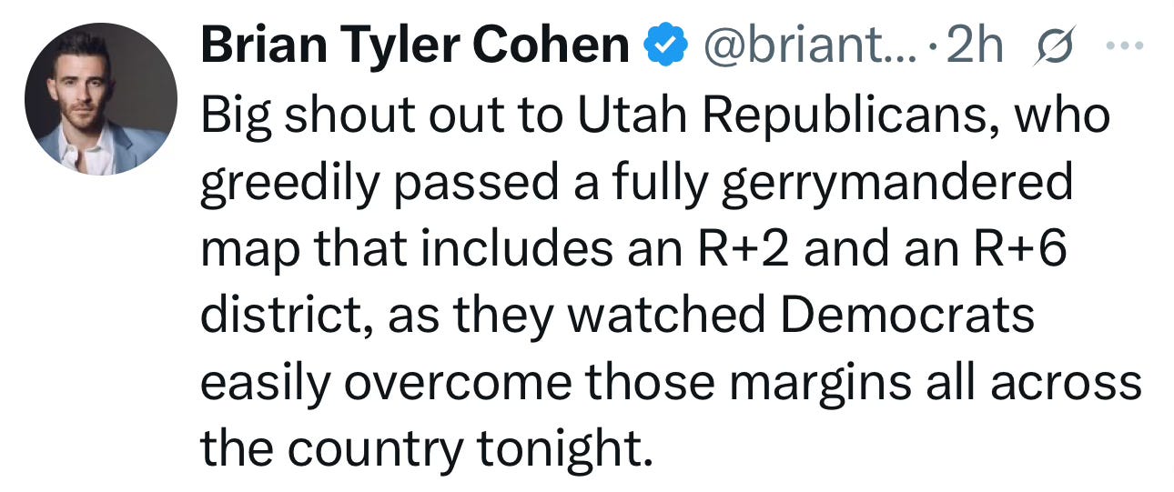 By now you know, Dems had a big night. We won the marquee races for governor in Virginia and New Jersey. We walloped the GOP on Prop 50 in California. We won down-ballot races and flipped lots of seats. And NYC has a young, charismatic Muslim mayor-elect—a historic first.