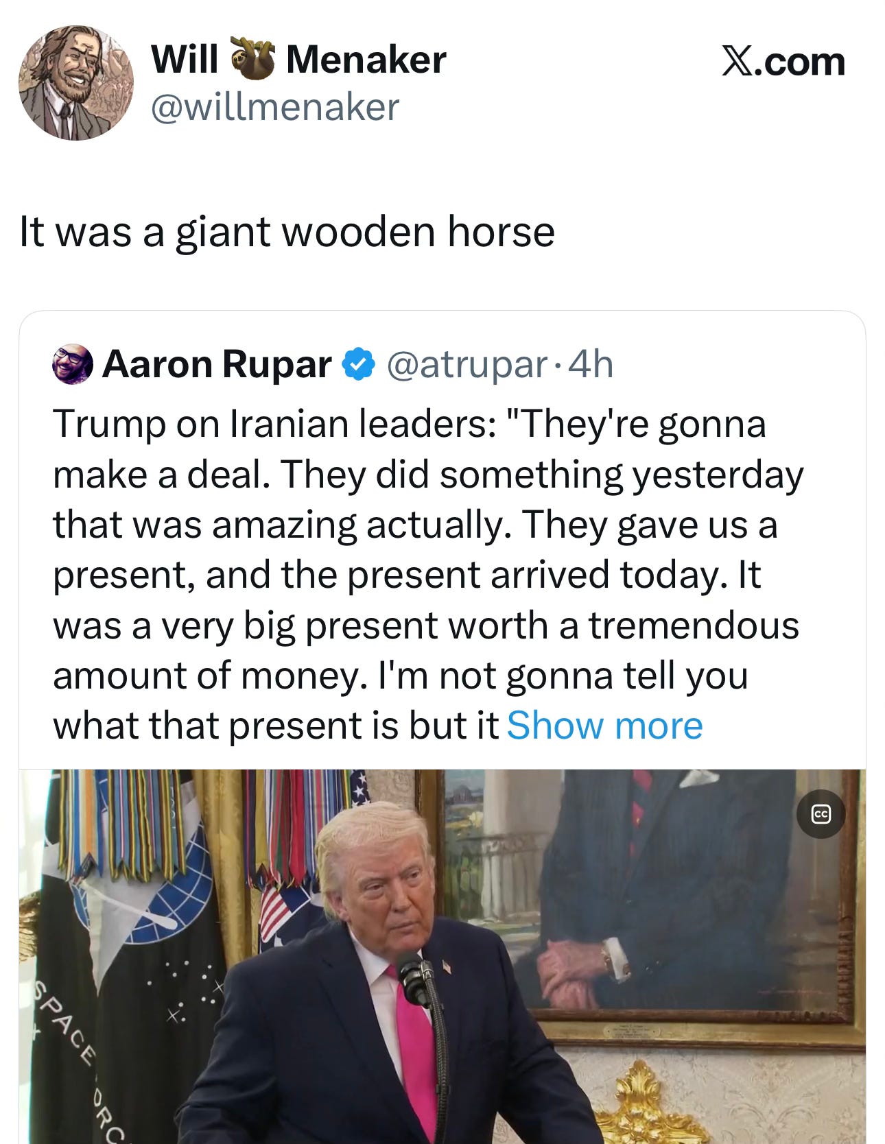 Note: Xcancel links mirror Twitter without sending traffic. Some GIFs may load; just swipe them down. Issues? Click the gear on the Xcancel page’s upper right, select “proxy video streaming through the server,” then “save preferences” at the bottom. For sanity, don’t read the comments; they’re all bots and trolls. Won’t load? Paste the link into your browser and remove “cancel” after the X in the URL.