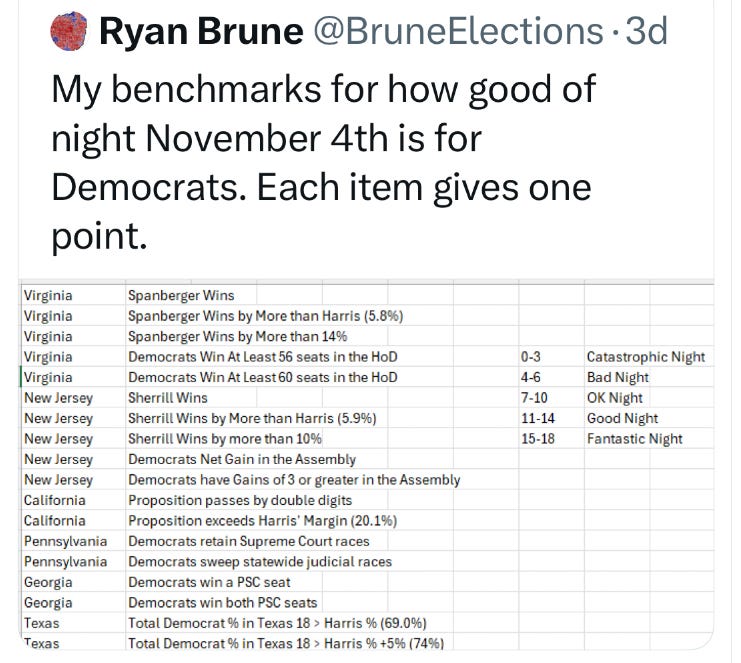 So just how big was this win? Election analysts, including yours truly, were all a bit obsessed with a “point” system chart put up by analyst Ryan Brune. So how did we do?
