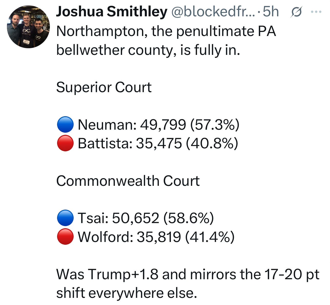 Lots of attention was on Pennsylvania’s Supreme Court retention vote, which won easily. But look what happened down ballot!