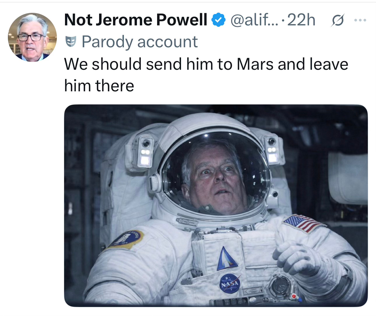 Let the memes begin! H/T to the Not Jerome Powell account…